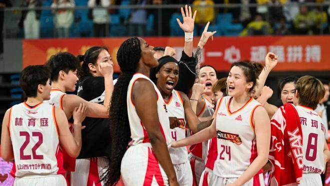 ▲山西女篮姑娘们围在一起欢呼胜利