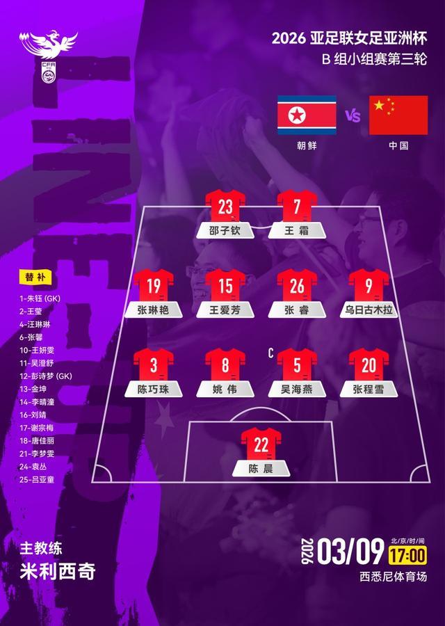 中国女足在B组前两轮2比0击败孟加拉国、3比0战胜乌兹别克斯坦。同组的朝鲜女足则是3比0乌兹别克斯坦、5比0大胜孟加拉国。在末轮对决之前,朝鲜队和中国队都已经提前出线,落后3个净胜球的中国女足想在淘汰赛上避开A组头名的东道主澳大利亚,唯有取胜拿到B组头名。